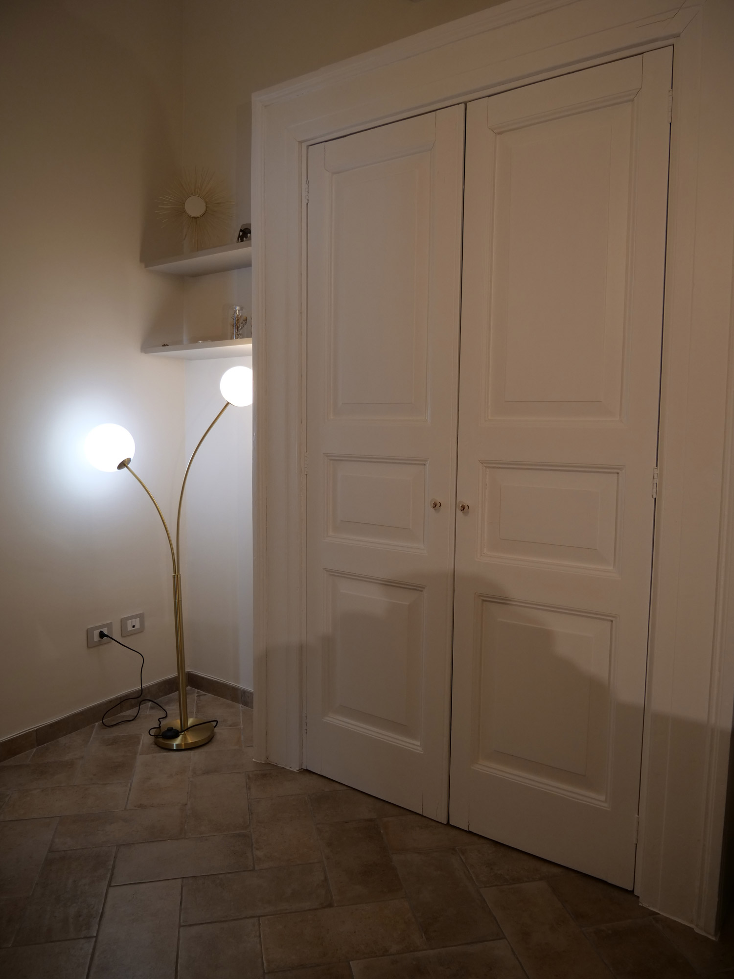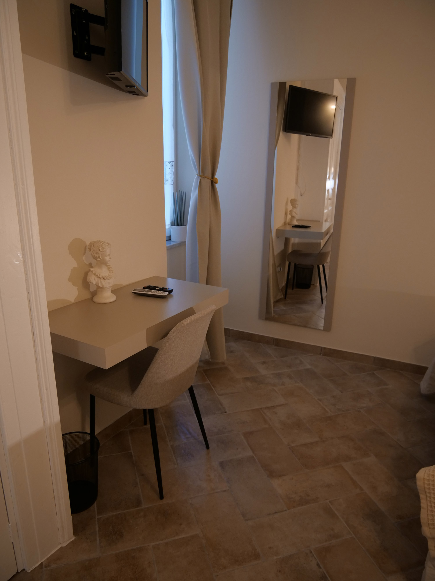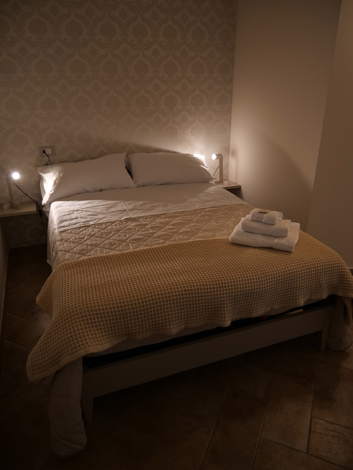 Sobria, raffinata e intrisa di storia, la camera Ostieri prende il nome dal vicino Largo Ostieri, nel cuore del centro storico di Sant’Agata de’ Goti, evocando un passato fatto di quiete, accoglienza e architettura rurale. La stanza si distingue per i suoi toni neutri ed eleganti, pensati per offrire un’atmosfera rilassante e senza tempo. L’arredo essenziale si integra con materiali naturali, mentre un dettaglio unico racconta l’anima del luogo: l’armadio, ricavato da una vecchia porta a doppia anta, conserva le porte originali, restituendo valore alla memoria e al riuso creativo. Affacciata su un cortile verde e silenzioso, nel cuore del centro storico, Ostieri è una camera matrimoniale con letto francese, bagno privato dotato di doccia, aria condizionata, Wi-Fi, ed un’intimità autentica. Uno spazio in cui ogni elemento, anche il più discreto, ha una storia da raccontare.